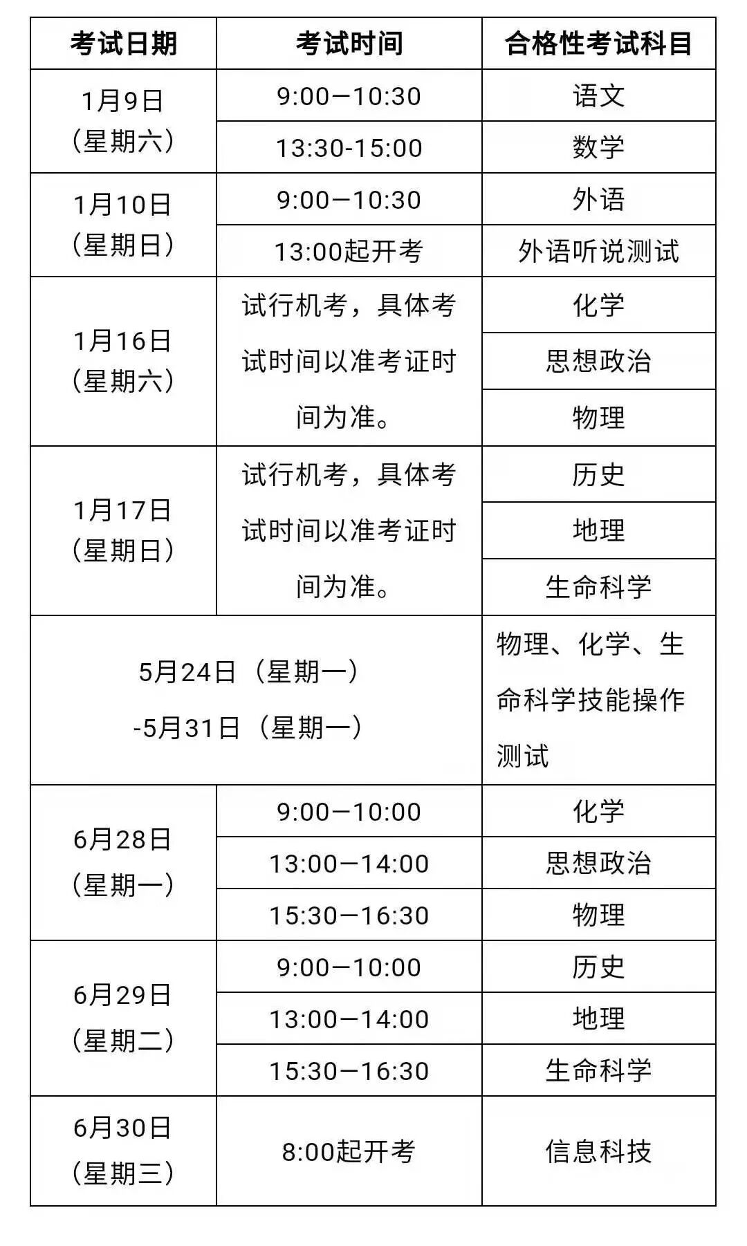 思想政治、歷史、地理、物理、化學(xué)、生命科學(xué)6門科目分合格性和等級性診斷,診斷時間均為60分鐘;其中,物理、化學(xué)和生命科學(xué)3門科目合格性診斷另設(shè)技能操作診斷,診斷時間均為15分鐘。2021年5月的等級考和6月的合格考以筆試形式進(jìn)行。為不斷推進(jìn)高中學(xué)業(yè)水平合格性診斷題庫建設(shè),探索合格考機(jī)考,在試測等值研究基礎(chǔ)上,2021年1月16日至17日的化學(xué)、思想政治、物理、歷史、地理、生命科學(xué)6門科目將試行機(jī)考,各科診斷時間均為60分鐘。各區(qū)教育行政部門要根據(jù)相關(guān)工作要求,做好各項(xiàng)準(zhǔn)備工作,確保診斷平穩(wěn)有序開展。