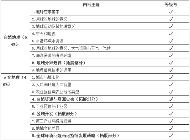 地理等級(jí)考的具體考查內(nèi)容如下表: