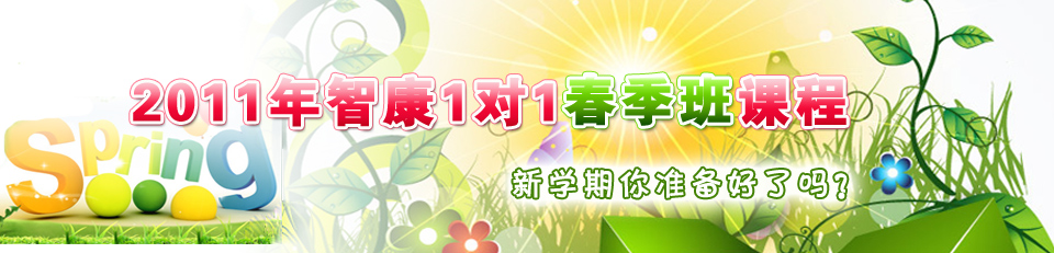 ??????? 俗話說得好:“一年之季在于春”,2011年春天來了,新學期也開始了,智康1對1春季班課程量身定制你的新學期學習計劃,讓你提高成績不再是難事!